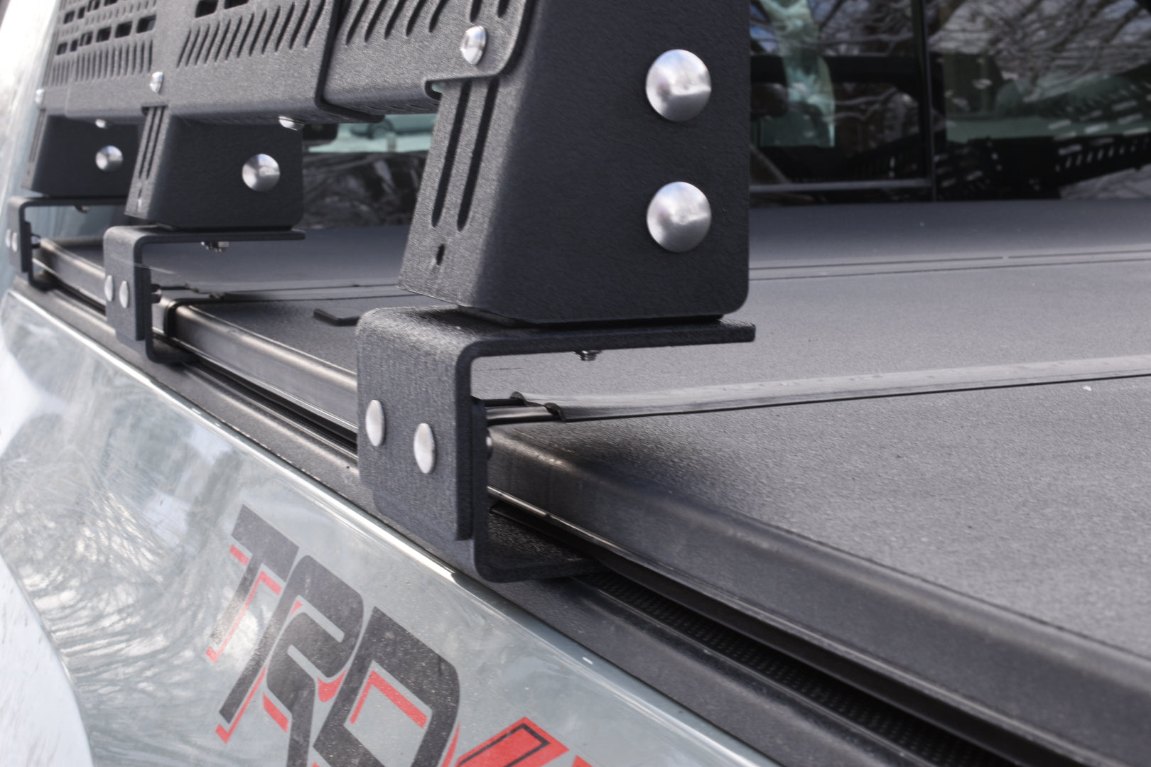 Designed to work with our Adventure Series bed racks. These brackets make it possible to use your bed rack with most tonneau covers. They are specifically designed to be compatible with most covers that rest on top of the bed rail. These brackets can easily be attached to trucks that have a factory accessory rail or those without one. Be sure to select the correct mounting option based on your truck's setup.