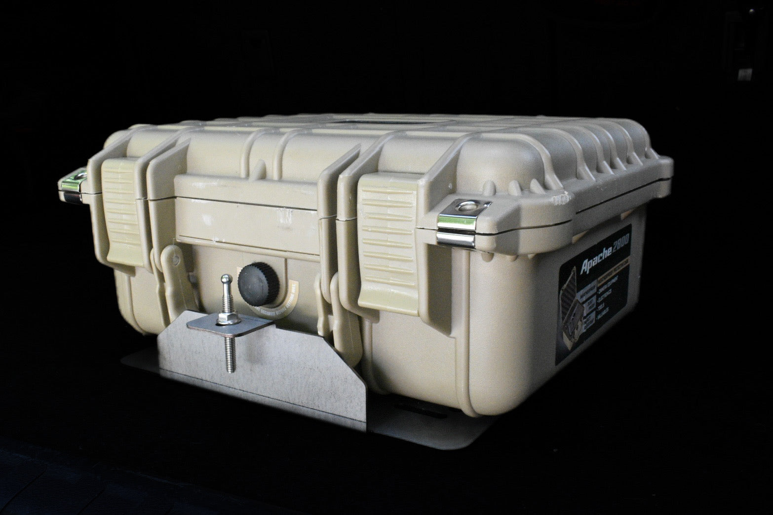 Our new Apache Case Mounts are designed to help secure your Apache cases without the need to drill into them. These mounts feature a quick release mechanism to allow quick access to your gear.